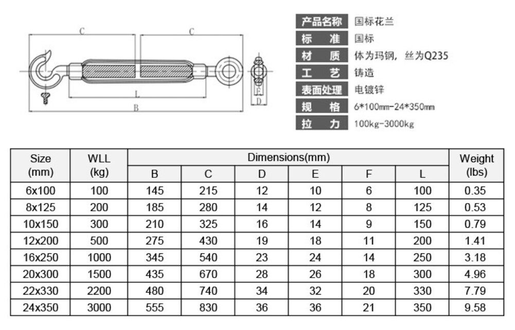 Galvanized Flower Basket Bolt flower Lanting screw Marine screw buckle steel wire rope tightener open body flower basket screw