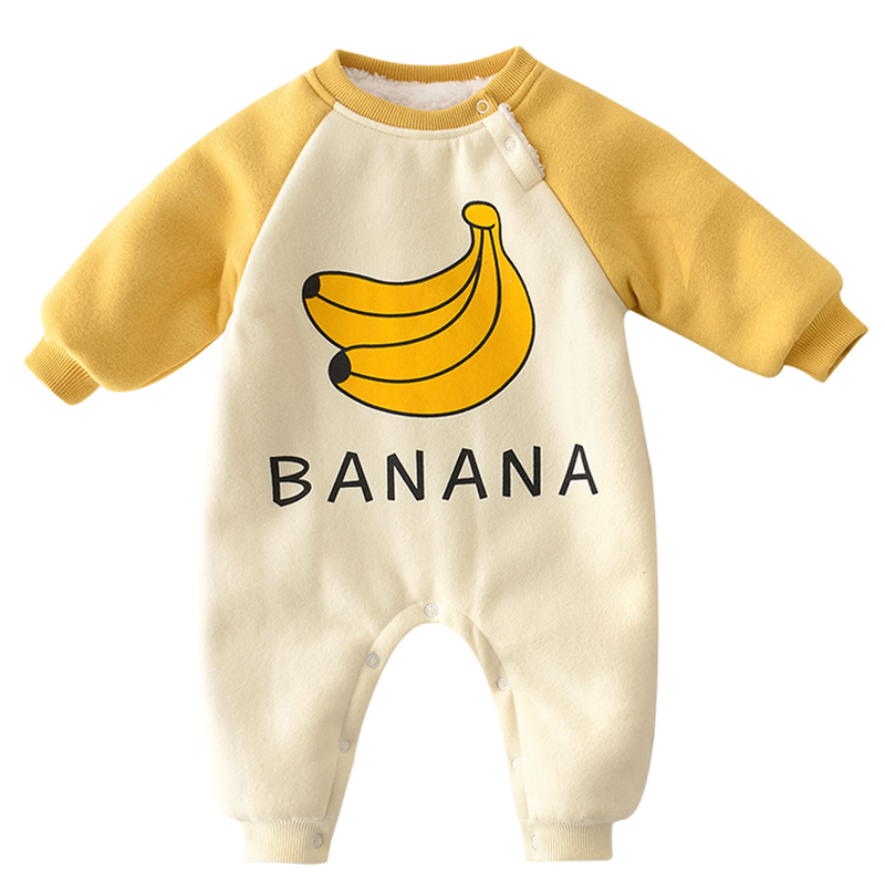 Autumn Winter Newborn Baby Girl Baby Girl Out Clothes Cute Cartoon Thickened Warm Banana Long Sleeve Climbing Suit Clothes