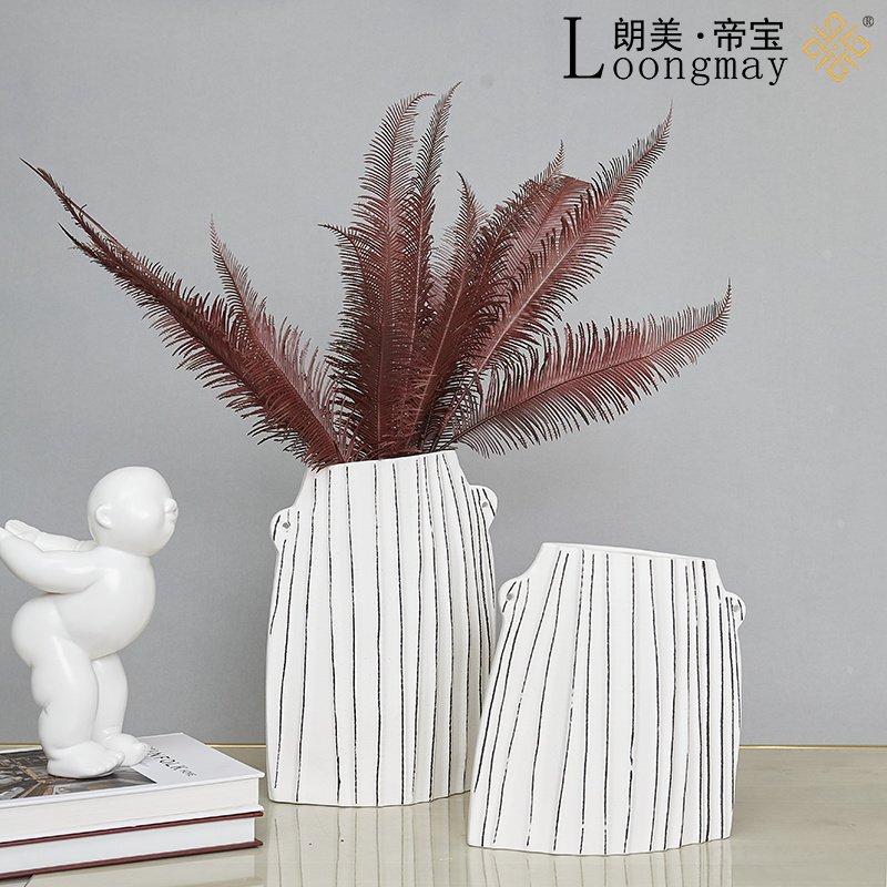 Modern light luxury flower pot ceramic simple line vase villain decoration model room living room creative decoration