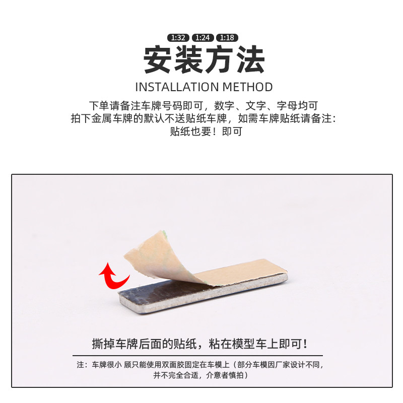 1:32 Customize aluminum alloy car model 1:24 1:18 Metal number plate Custom Stainless Steel Personality License Plate