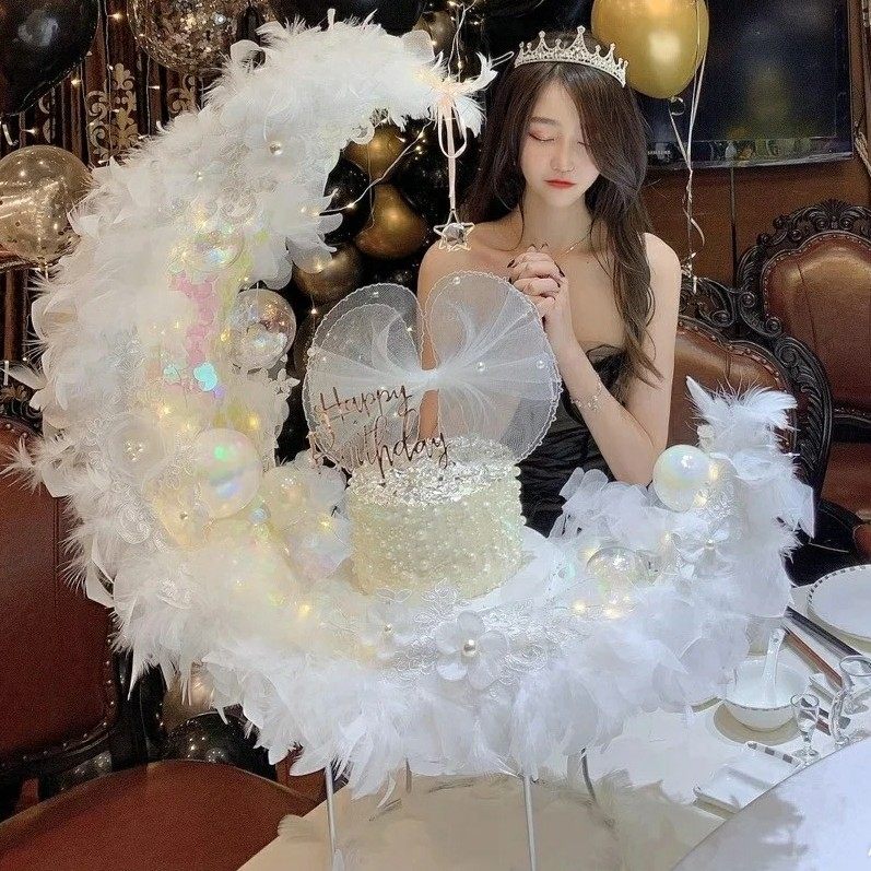 Fluffy style (feathers more slight hair loss) 7 days hair (c style spot same day hair) urgent order please contact pure feather no lace no sequins (3 days or so happy birthday hair band glitter pink rose gold shoulder strap + crown