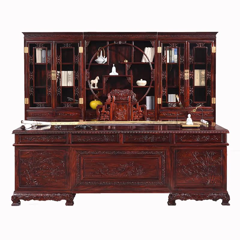 Indonesian Black Acid Branches Wood Chinese Large Class Table Books Room Table And Chairs Bookcase Writing Home Office Red Wood Furniture Owner Table