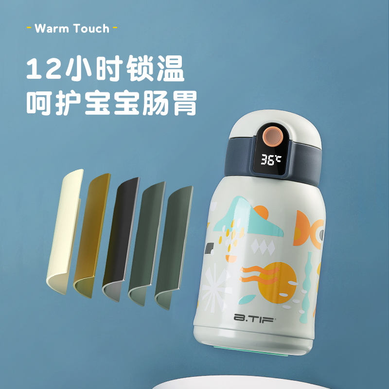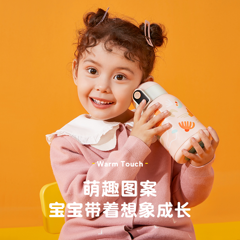 American smart children's thermos cup with straw Male and female dual-use kettle Primary school kindergarten water cup Baby cup