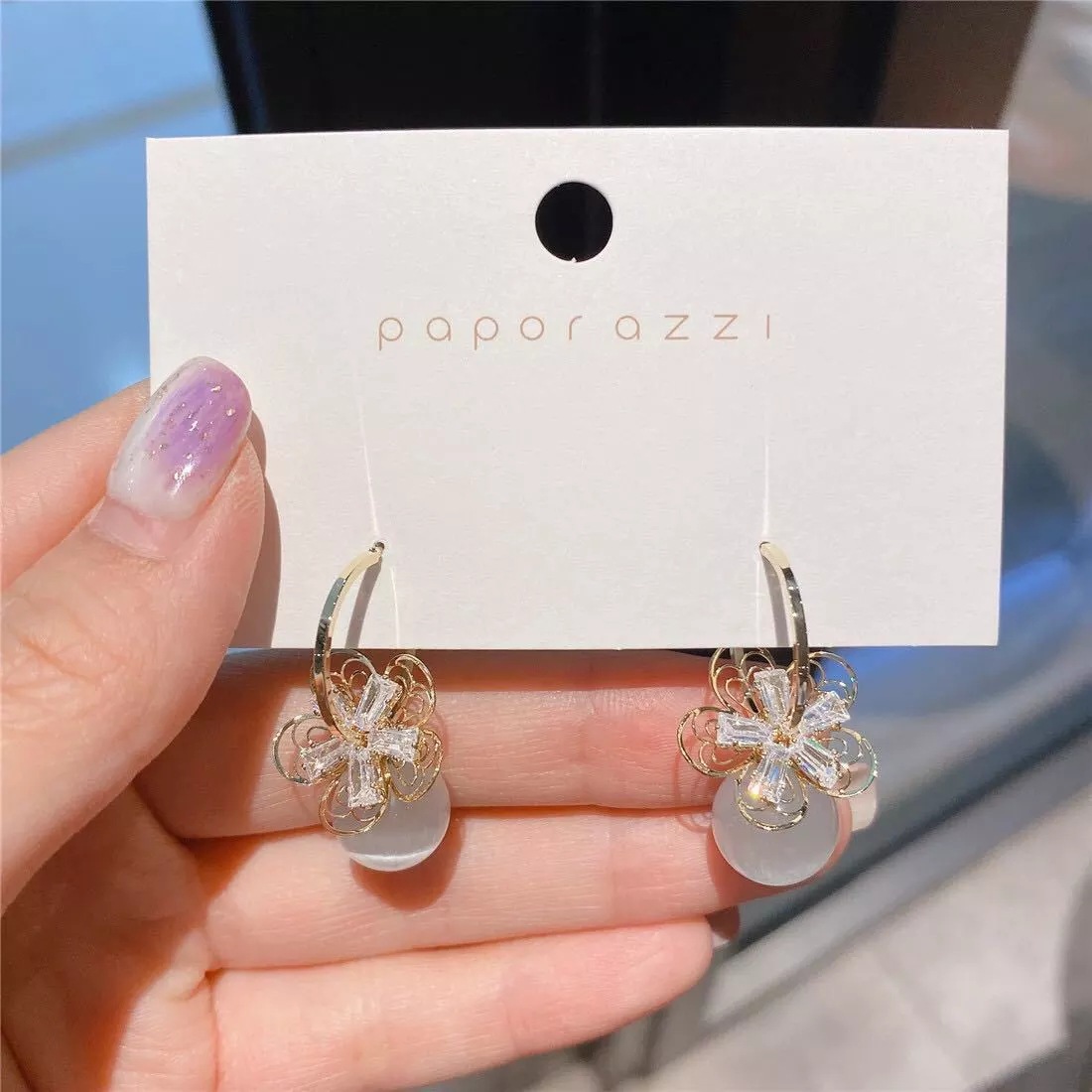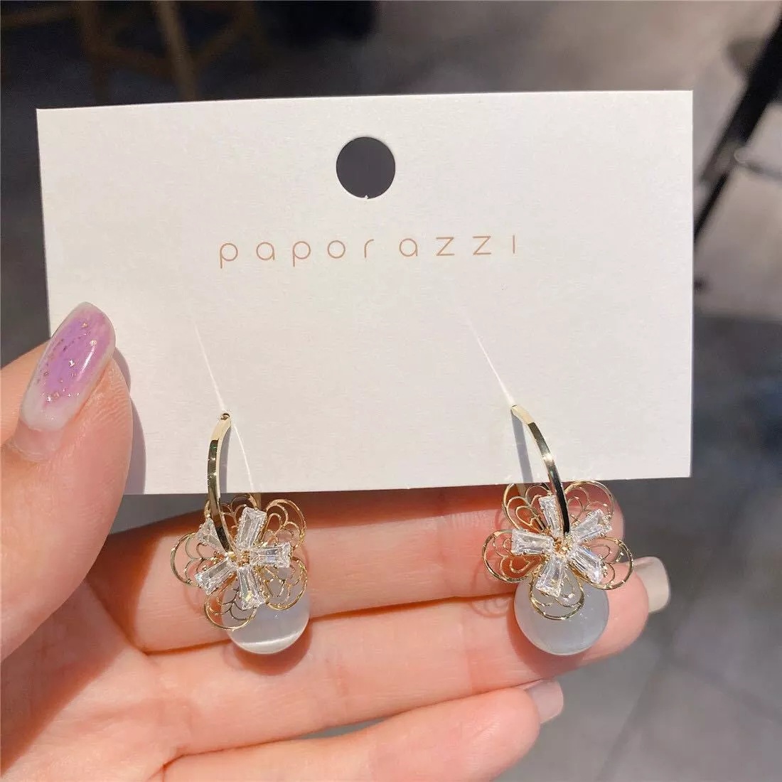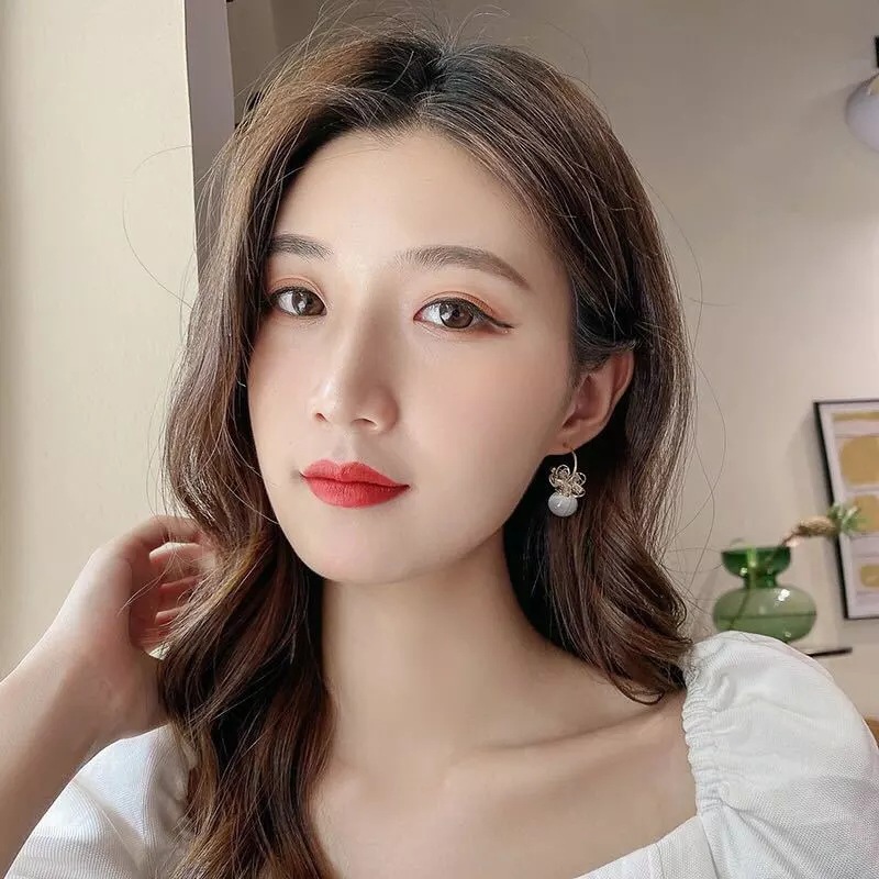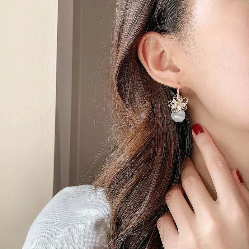 S925 Silver Needle Zircon Pearl Opal C-ring Earrings Dongdaemun Hollow Flower Temperament Net Red Earrings Earrings