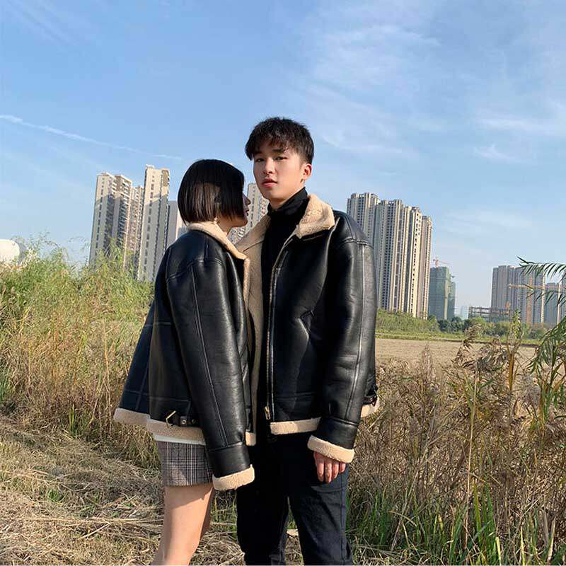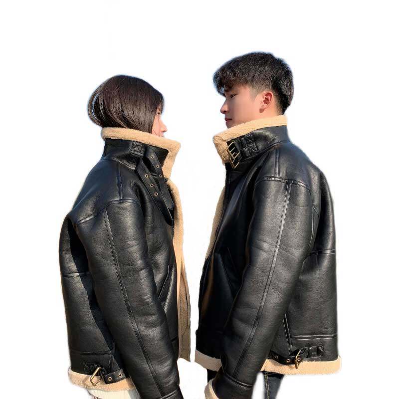 Lamb fur integrated Male Thickened Casual Couple Jacket Winter Clothing Stand Collar Bungled Cotton Jacket Plus Suede Locomotive Suit Leather Jacket