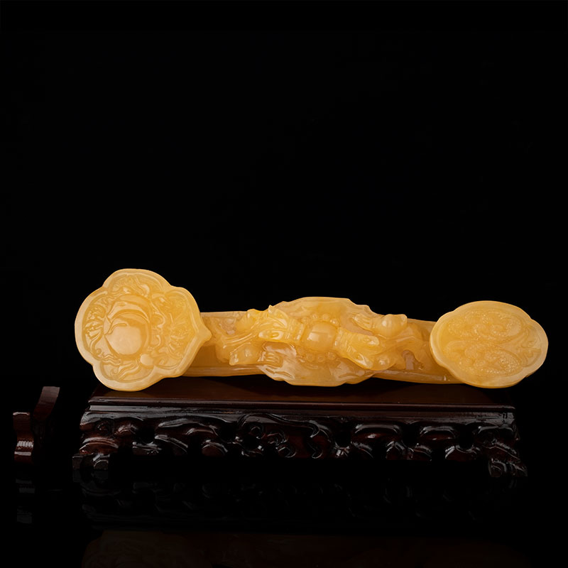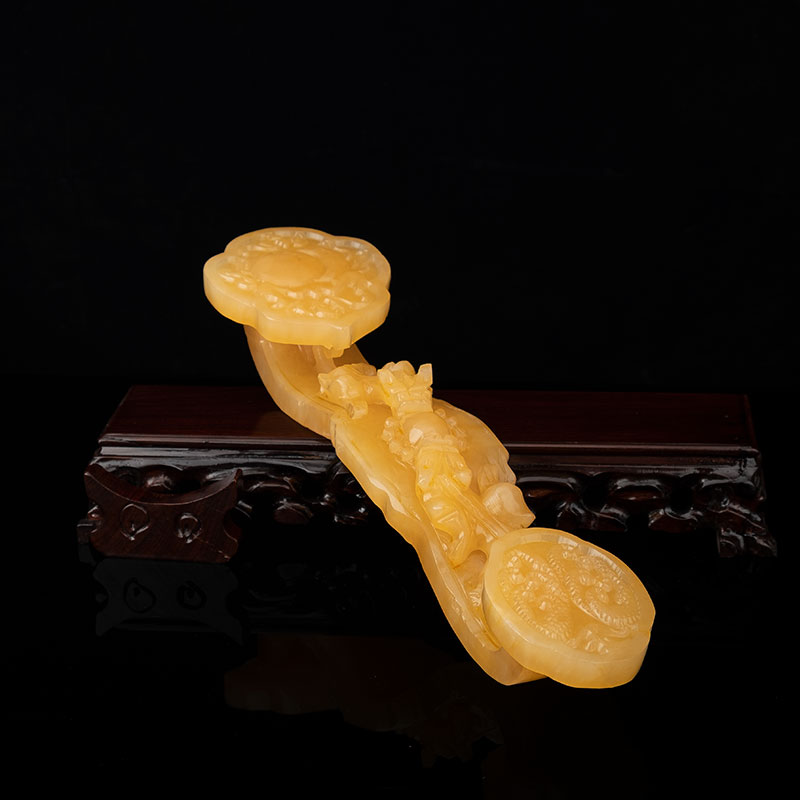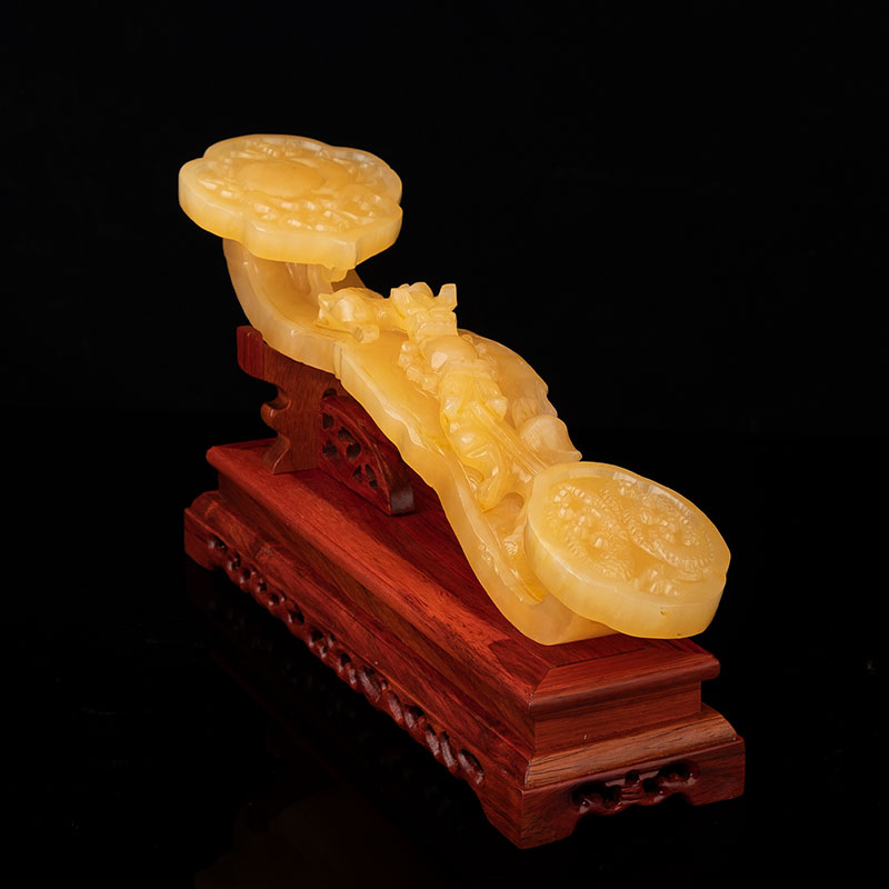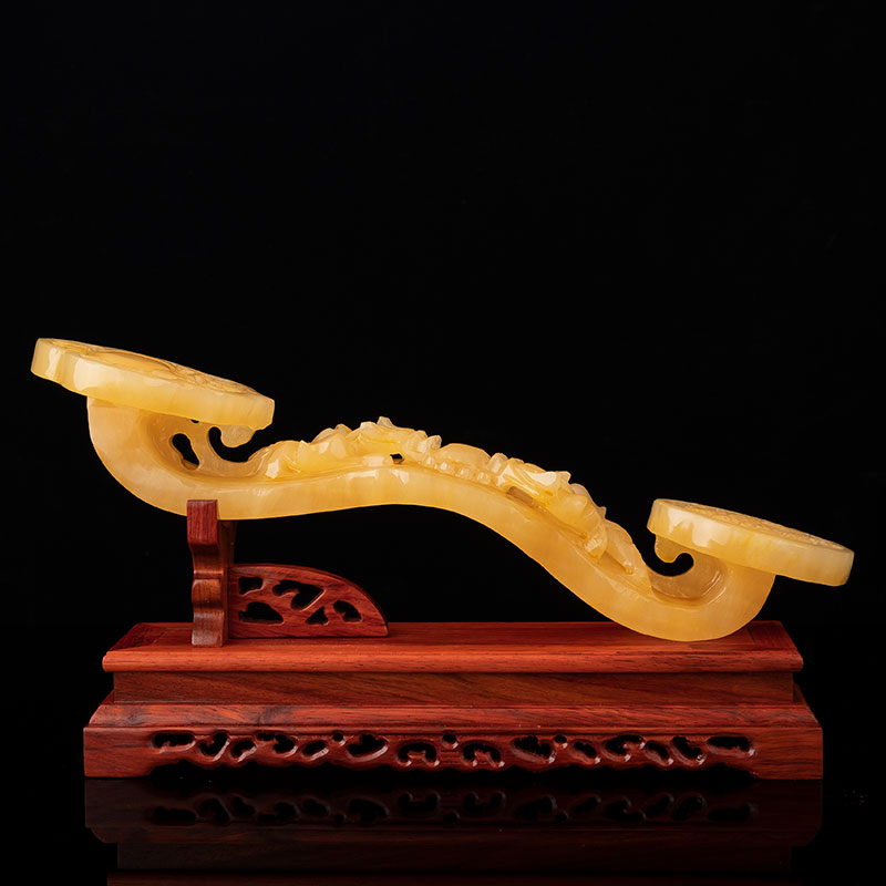 Double Dragon Play beads Topaz Ruyi 26cm Black Azusa wood base gift box with tassel certificate Double Dragon Play beads Topaz Ruyi 26cm Rosewood base gift box with tassel certificate Double Dragon Play Beads Topaz