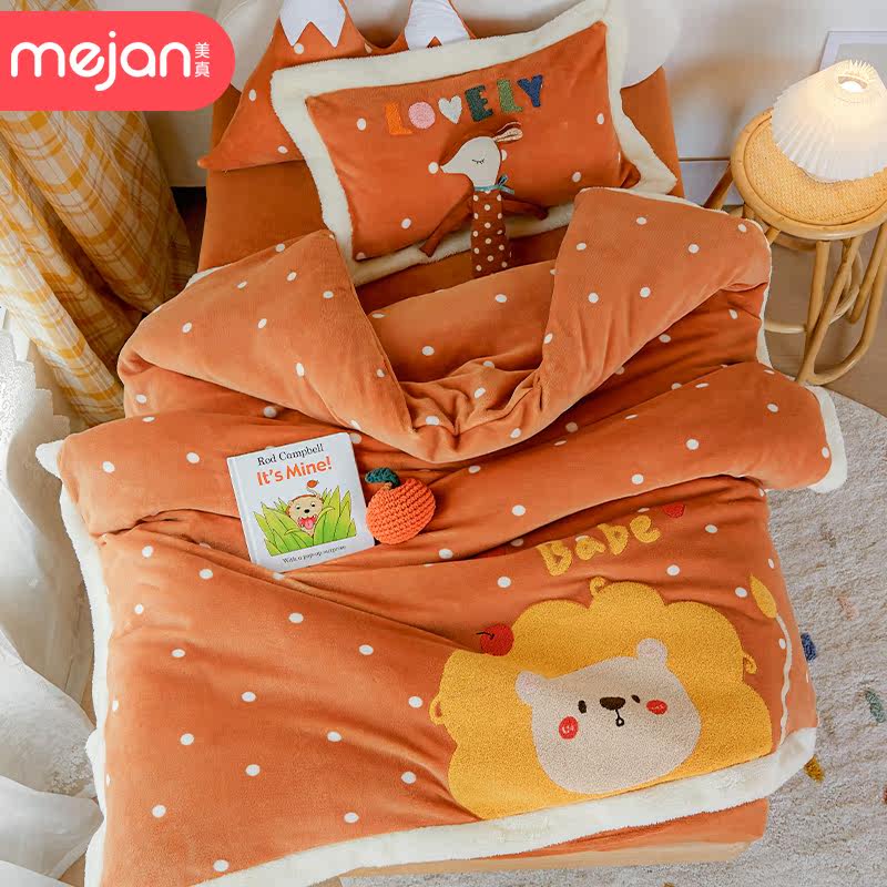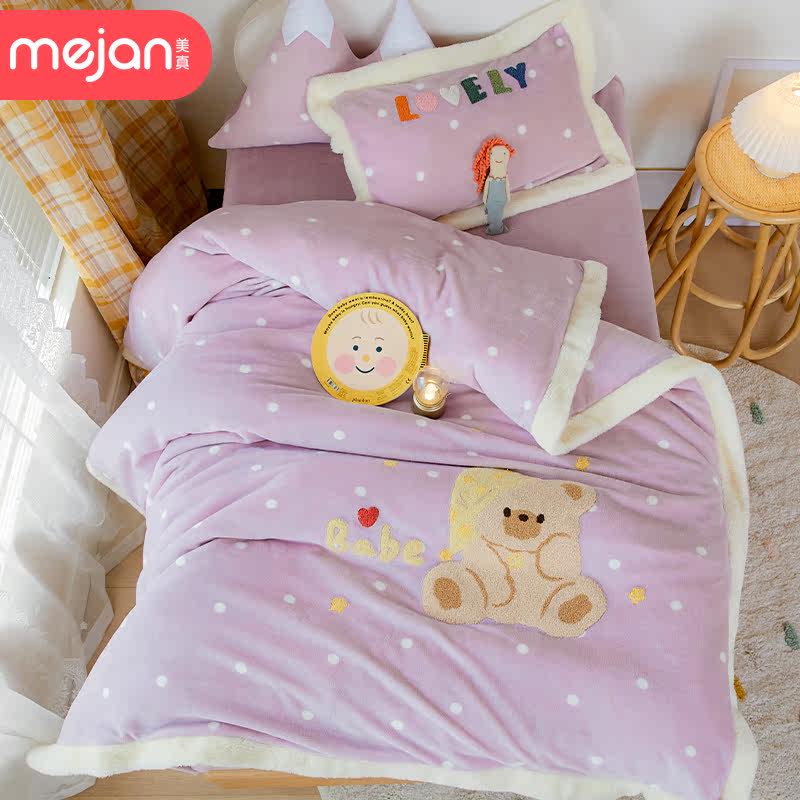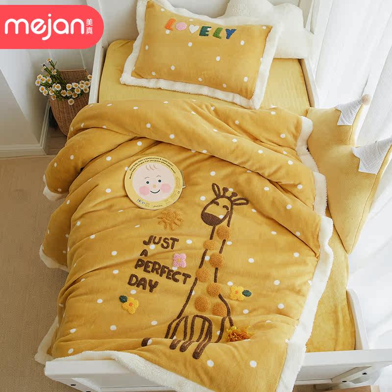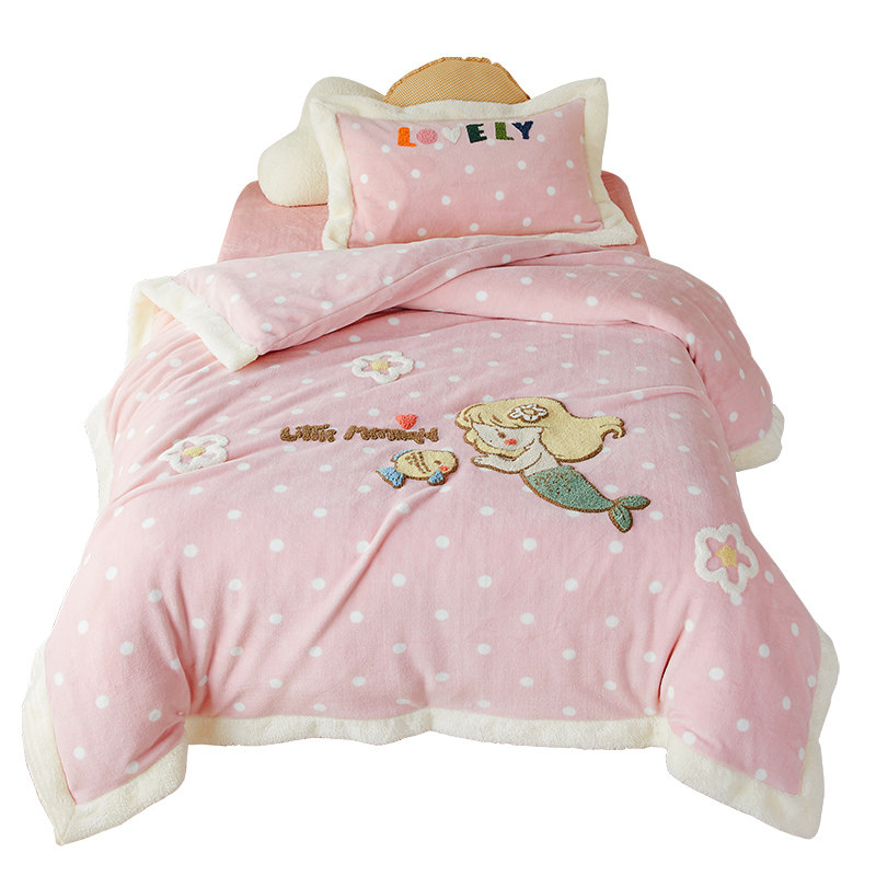 Kindergarten quilt three-piece set winter thick warm coral velvet quilt cover futon six-piece set baby children's bed products