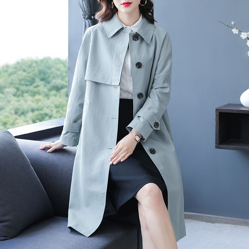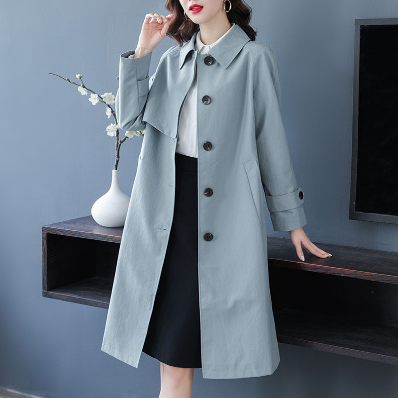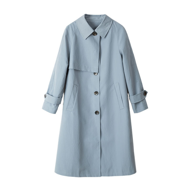 2022 spring and autumn new high-end Korean style thin light blue windbreaker women's mid-length simple temperament foreign style coat