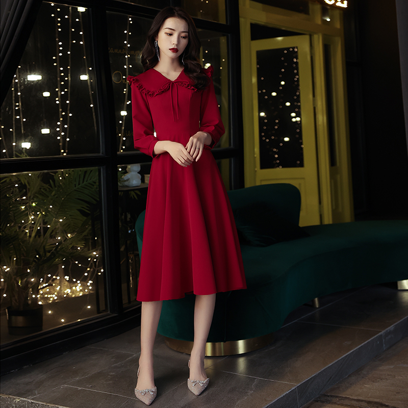 Toast dress The bride's little man can usually wear long-sleeved daily burgundy engagement dress Back door dress skirt woman