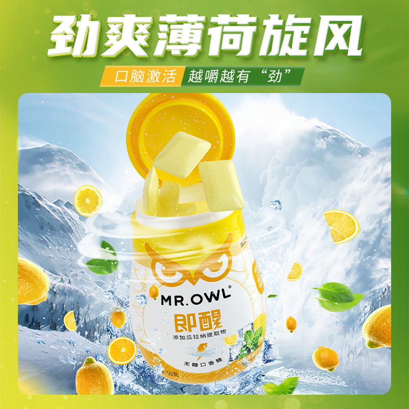 Strong mint lemon flavor instant wake-up sugar-free chewing gum large-capacity fresh breath xylitol canned Mr. Owl