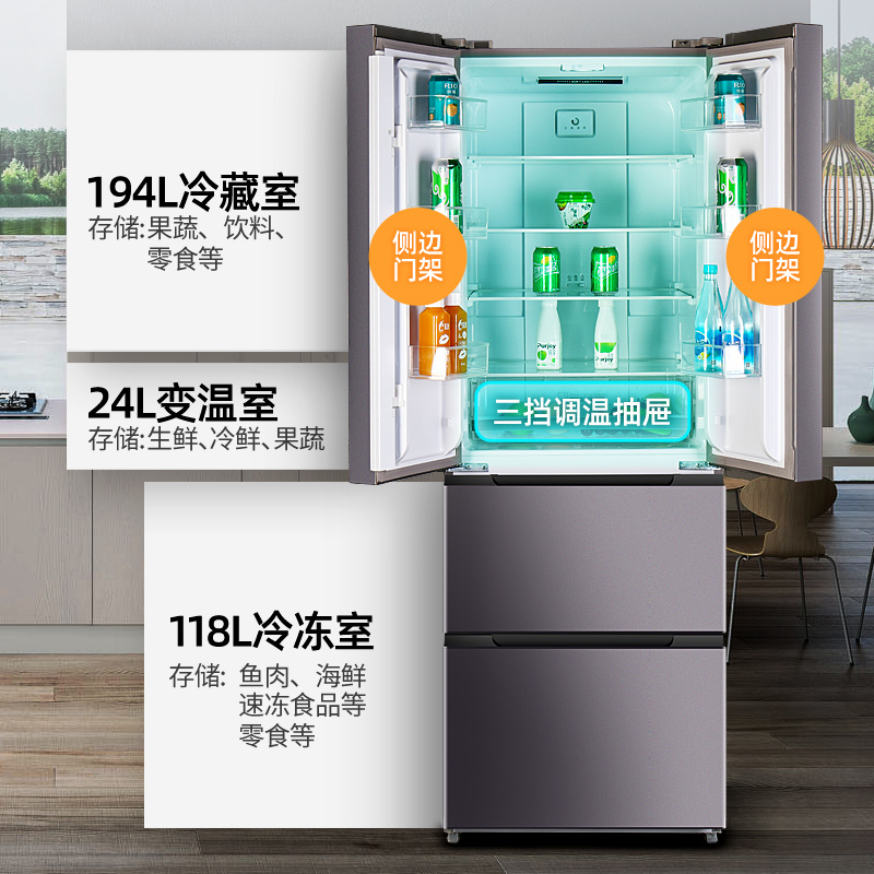 Xinfei 336 liters air-cooled frost-free grade frequency conversion Xinfei 310 liters air-cooled frost-free secondary energy efficiency Xinfei 280 liters straight cold micro-Frost Golden burst Konka 300 liters straight cold micro-cream