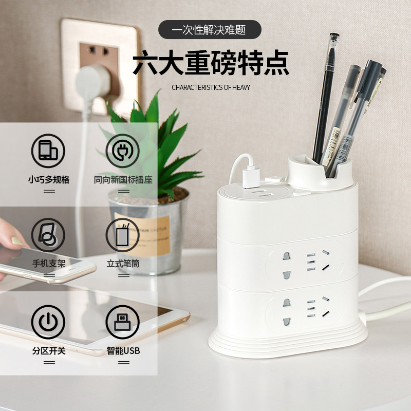Vertical row plug extension cable Creative tower-shaped smart USB plug socket with line multi-function mobile phone charging plug board