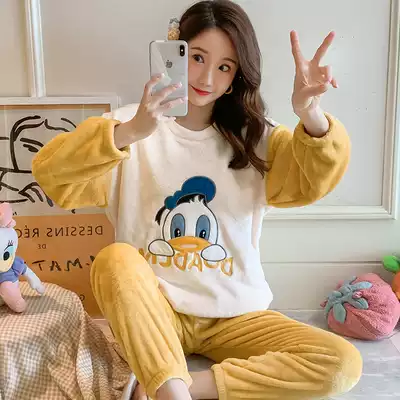 Pajamas women autumn and winter coral velvet 2021 New Net red velvet padded set flannel home suit red Burger