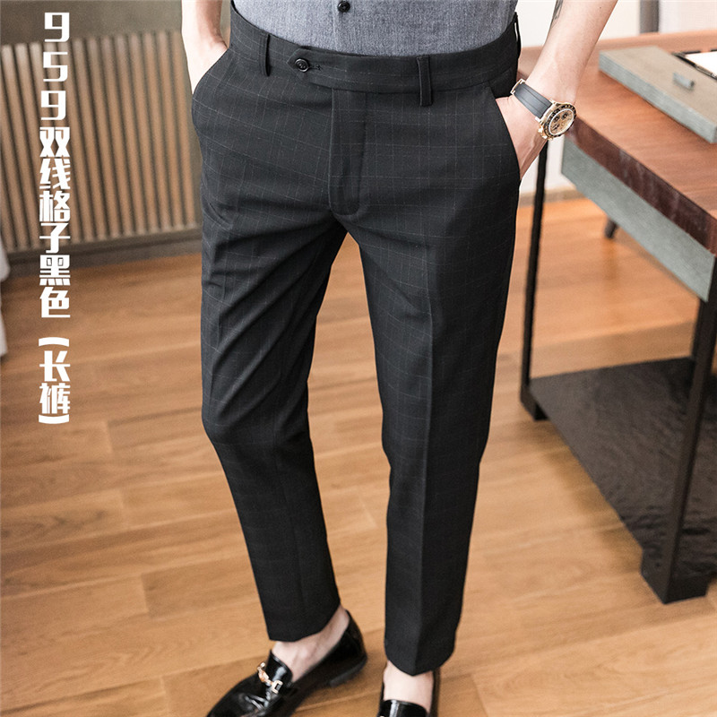 Spring pendant sensations Western pants Men's straight sleeves Suit Striped Small Leggings Pants 90% West Suit Casual Pants Trendy Thin-Taobao