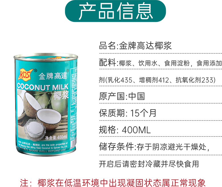 Coconut Milk Gold Medal up to 400ml tank concentrated coconut milk West rice taro round Thai winter soup ingredients