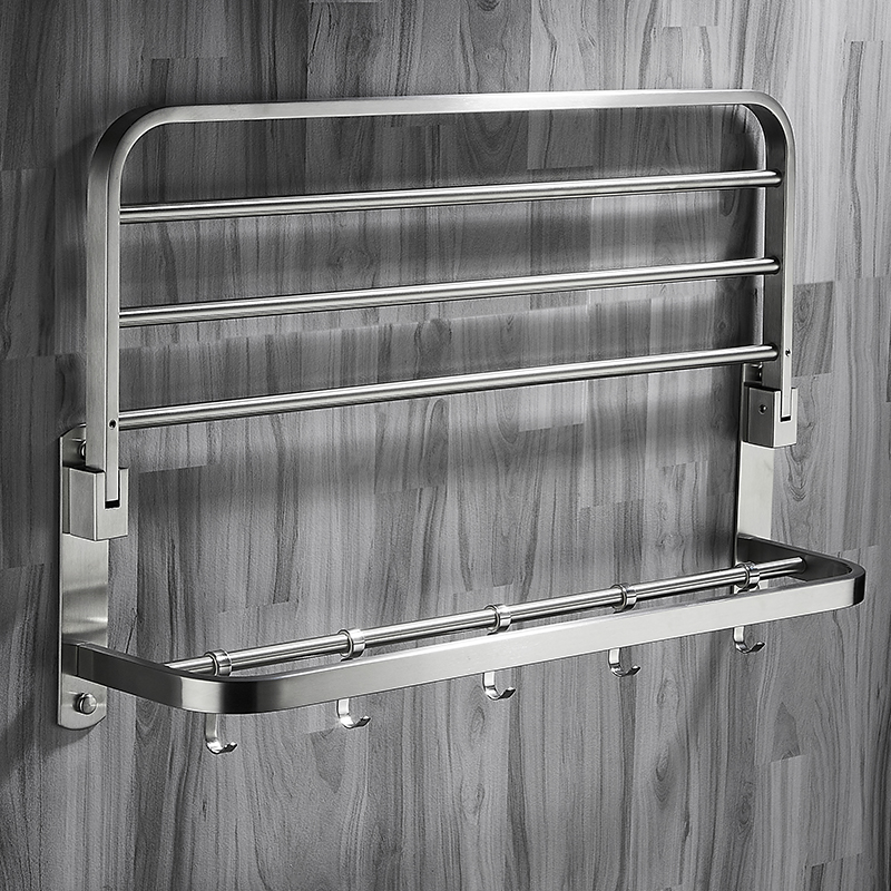 304 Stainless Steel Folds Fold with hook bath towels Perforated Dressing Room Wire Drawing Double Towel Rod Bathroom Shelve