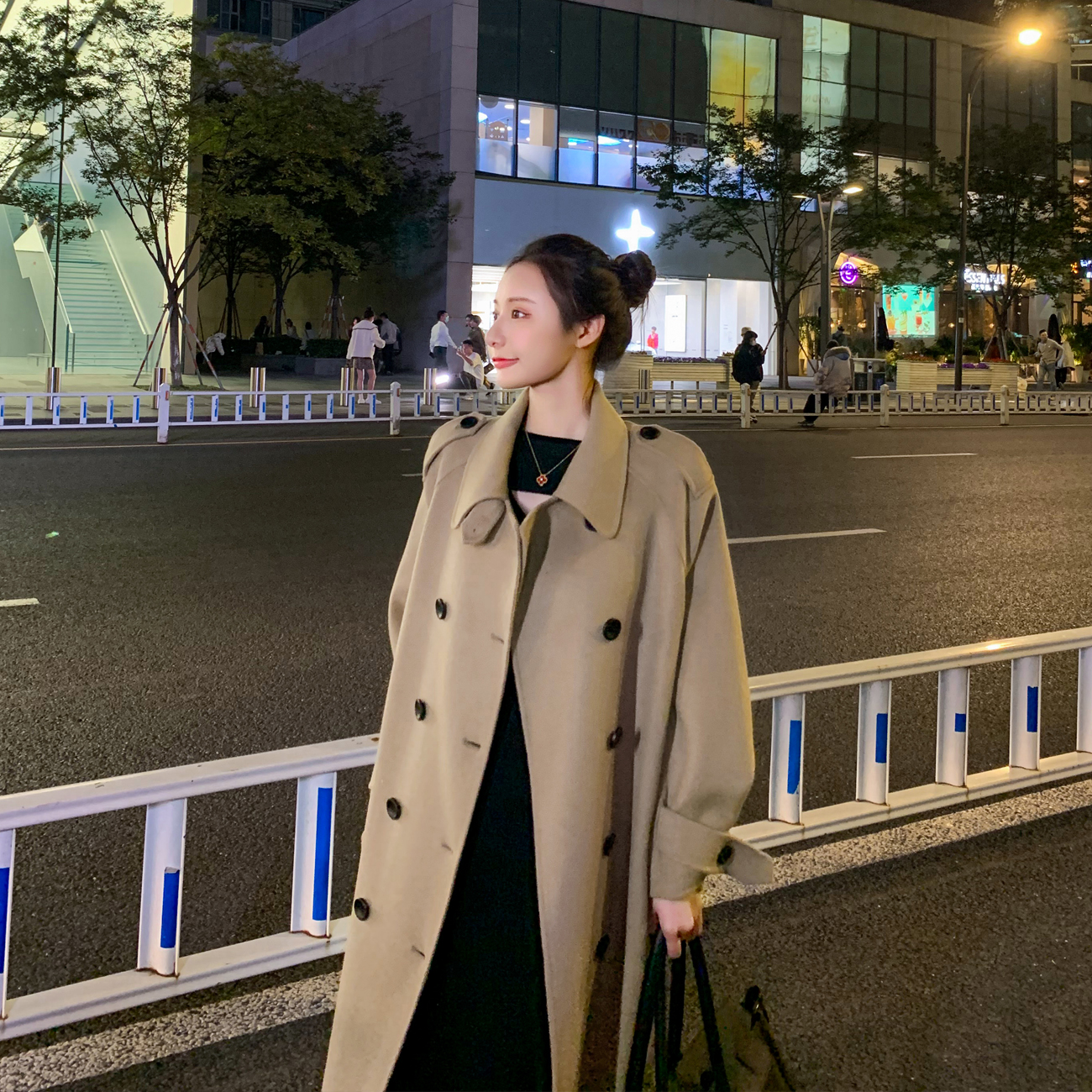Double face cashmere Grand coat woman with long version of the knee 2021 Autumn winter new high-end temperament wool Coat Thickness