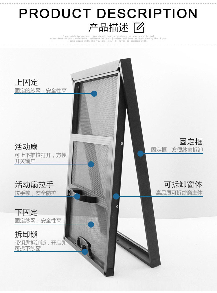 Three-way gold and steel mesh screen window detachable and washable screen window Child protection anti-theft anti-mosquito gold and steel mesh screen window