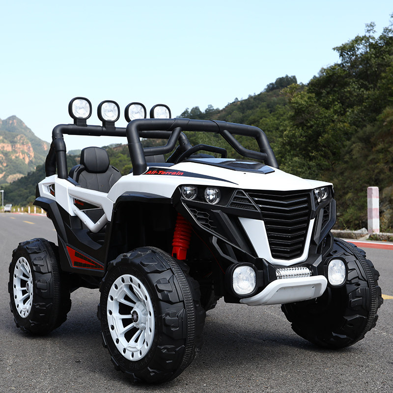 White four-wheel drive 12V10 battery + leather seat + explosion-proof soft wheel Double seat + iron tooth motor