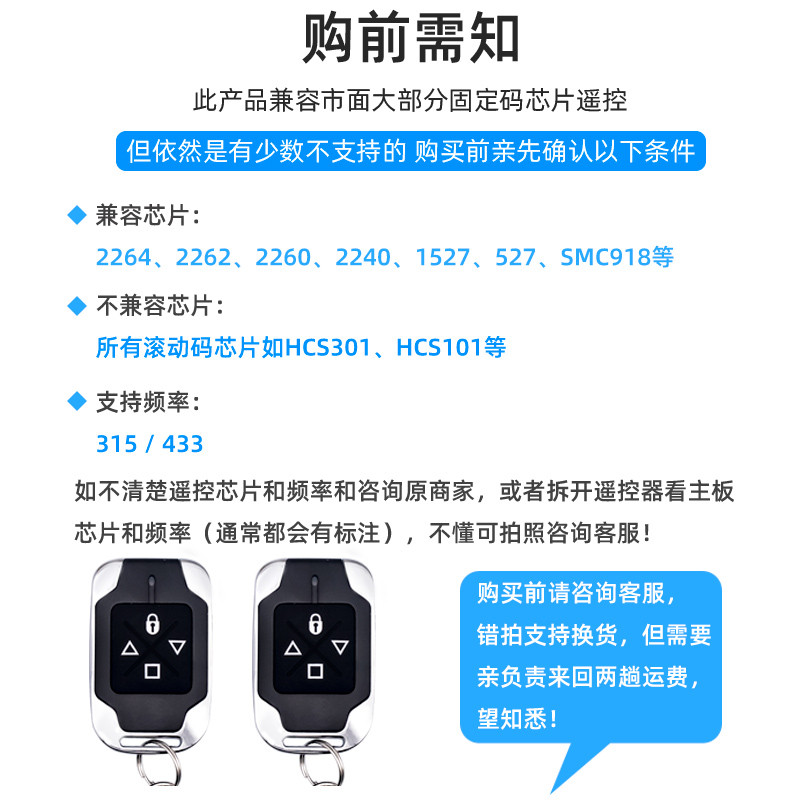 Universal 433 315 pair copy garage door electric rolling shutter door rolling gate fence machine telescopic door key remote controller