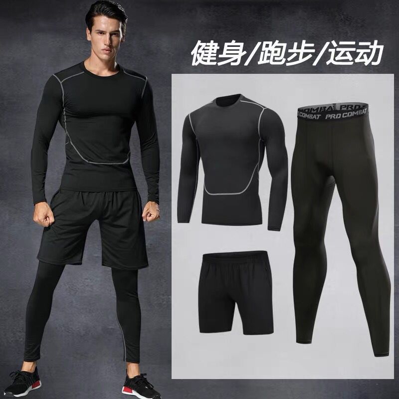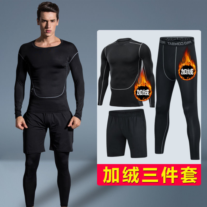 Ski quick-drying clothes winter basketball tight-fitting long-sleeved high-elastic men's sports equipment suit plus velvet sports training clothes