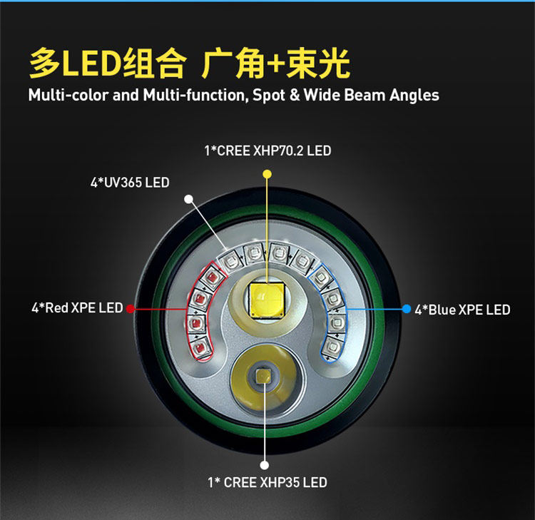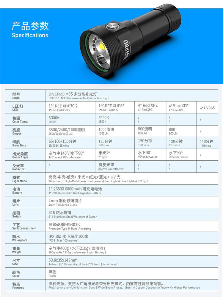 DIVEPRO M35 diving photography multi-function flashlight concentrated light red and blue UV light underwater photo fill light