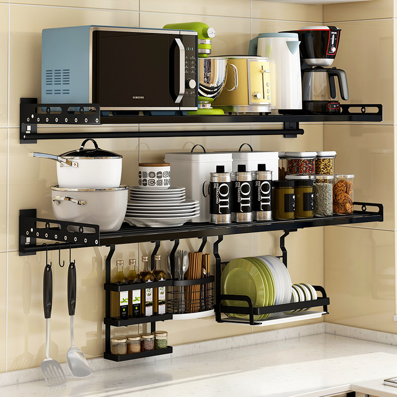 Creole Laminated Stainless Steel Microwave Oven Rack Wall-mounted Oven electric cooker Cooker Containing shelf Kitchen Set Free of Punch
