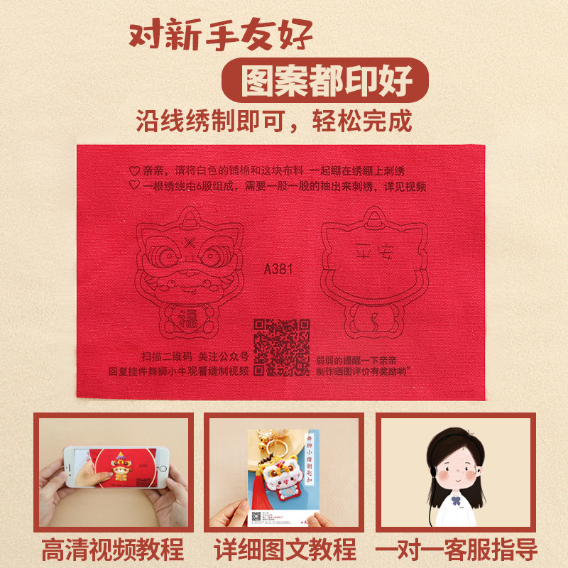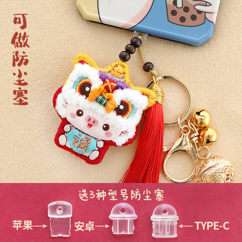 Embroidered diy hand self-embroidered lion material bag pocketbook send boyfriend gift car key buckle Ping An auto pendant