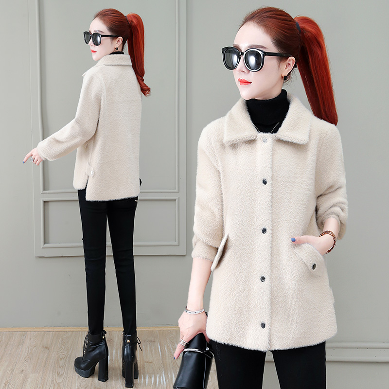 Early autumn casual short short women's coat 2022 new spring and autumn all-match imitation mink fleece cardigan top