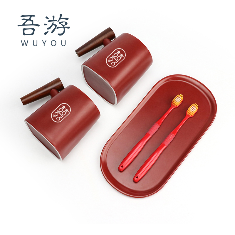 Jujube red _ attachment wash cup A pair of Jujube red _ attachment wash cup a pair of gift boxes] Jujube red _ attachment wash cup a pair of oval ceramic tray Jujube red attachment wash cup a pair of gift boxes] Ellipse