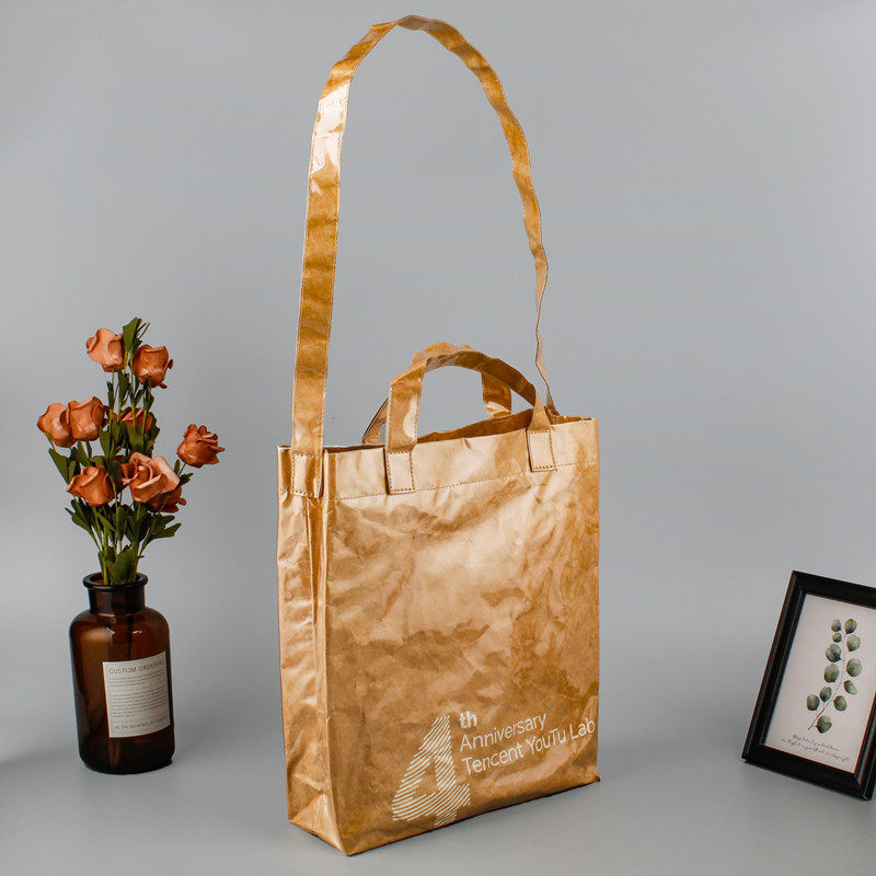 Special Weiqiang washed DuPont paper bag Custom logo Single shoulder handbag Environmental protection bag set to be resistant to tear kraft Paper bag bookings-Taobao