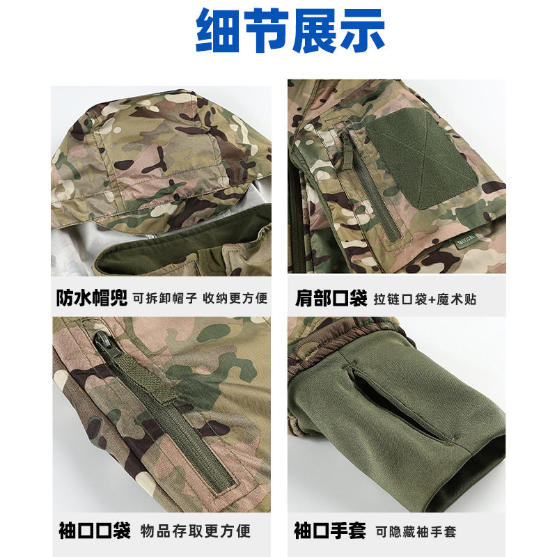 New men's autumn and winter outdoor camouflage jacket waterproof and windproof warm clothes plus velvet ultra-light jacket tactical stormtrooper
