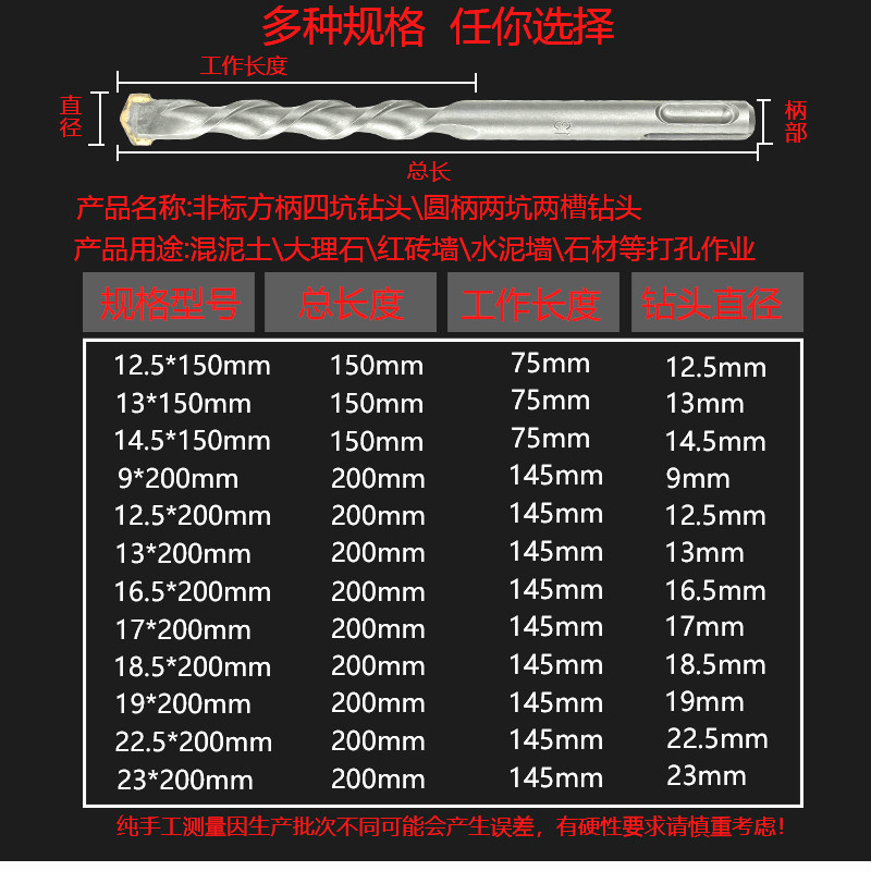 Non-Label electric hammer drill bit 9 11 12 5 13 16 5 17 17 19 23 23 handle 4-pit round shank impact drill