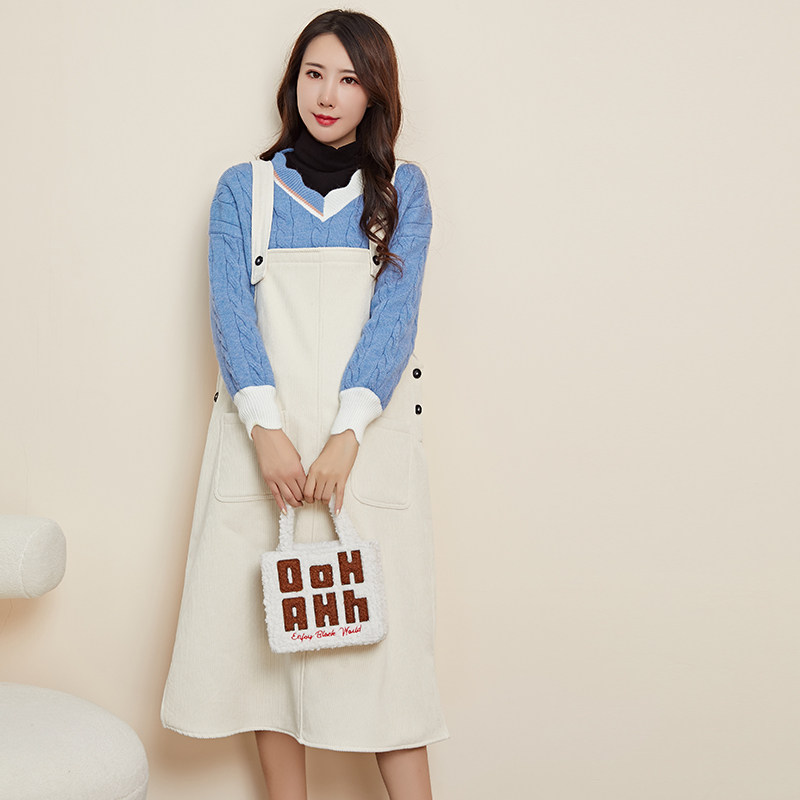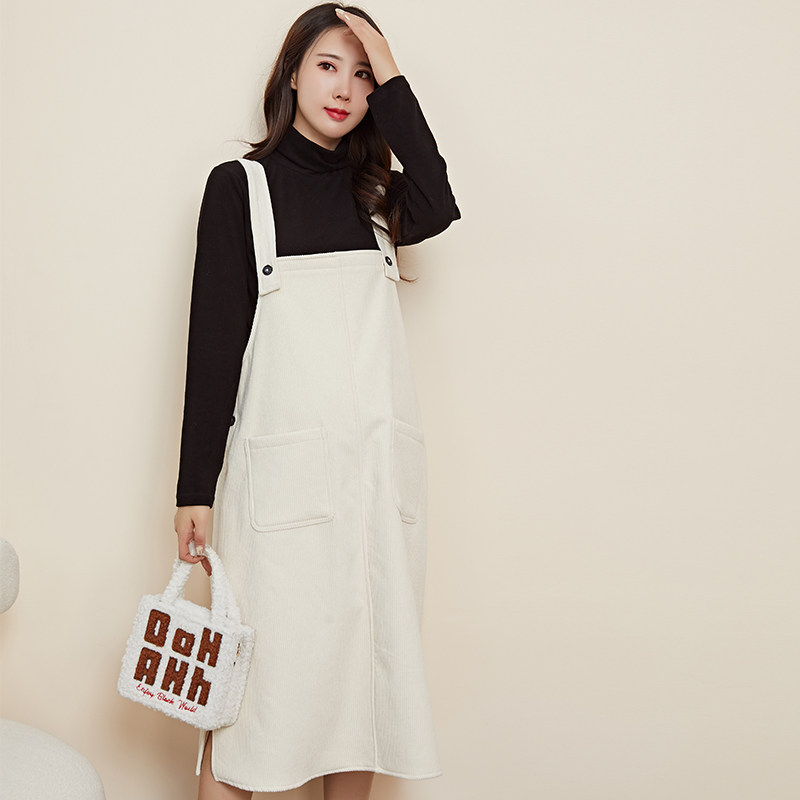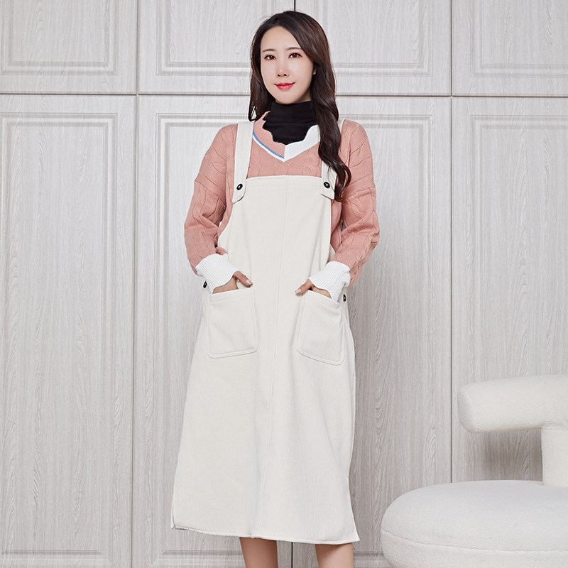 Pregnant spring slip dress fashion plus velvet 2021 new Korean version temperament outside wearing corduroy strip velvet shoulder strap skirt