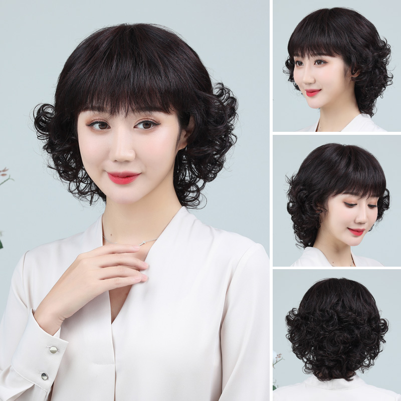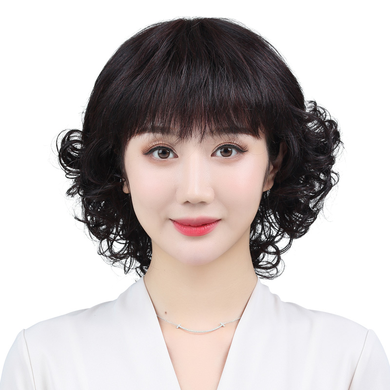 Wig female hair hair full natural middle-aged mommy temperament short hair hair real hair hair outer full head cover