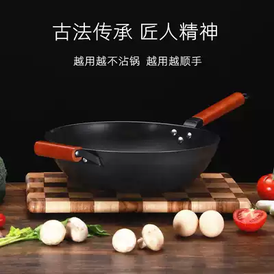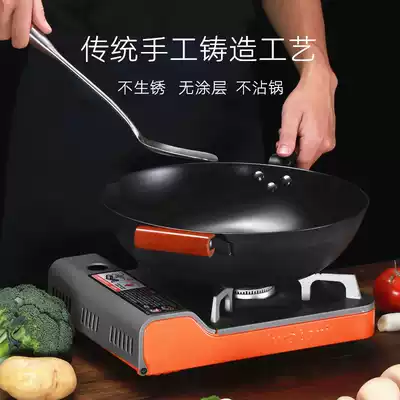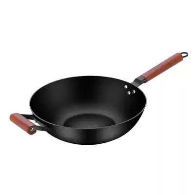 Su Mei Crown 34CM plus ear cast iron pot handmade non-stained pot non-coated induction cooker thickened flat bottom wok iron pot