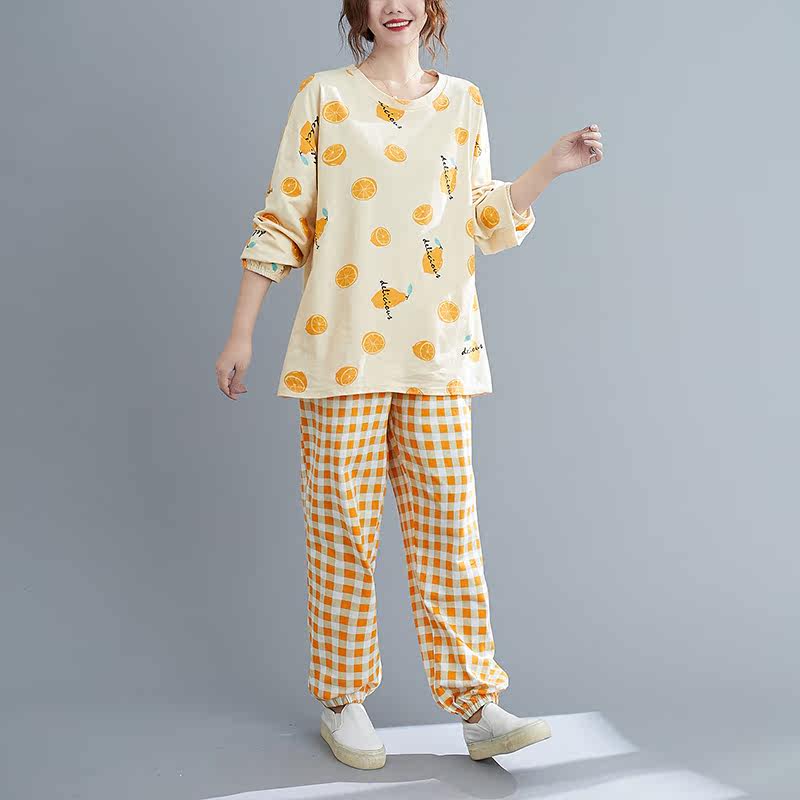 Ultra Fat Sleepwear Woman Long Sleeve Spring Autumn Season Pure Cotton 240 Fat Mm Loose Home Conserved Two Style Suits Up 300 catty