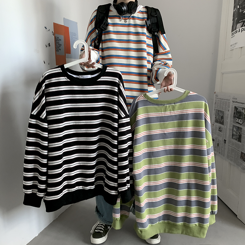 2021 new thick cotton T men's autumn tide brand casual wild striped top clothes ins Harajuku loose trend coat