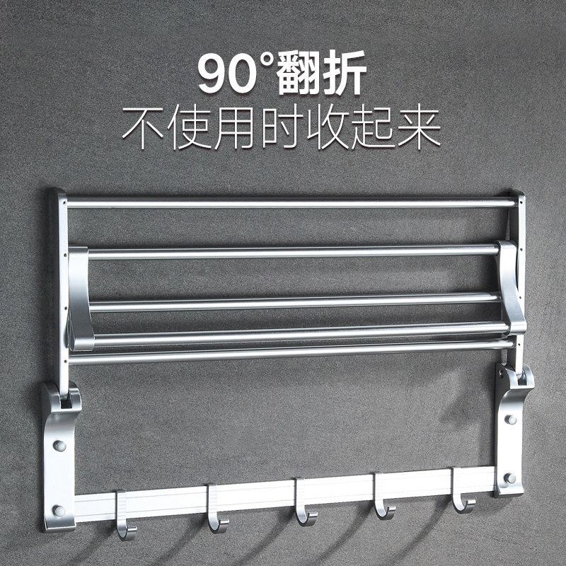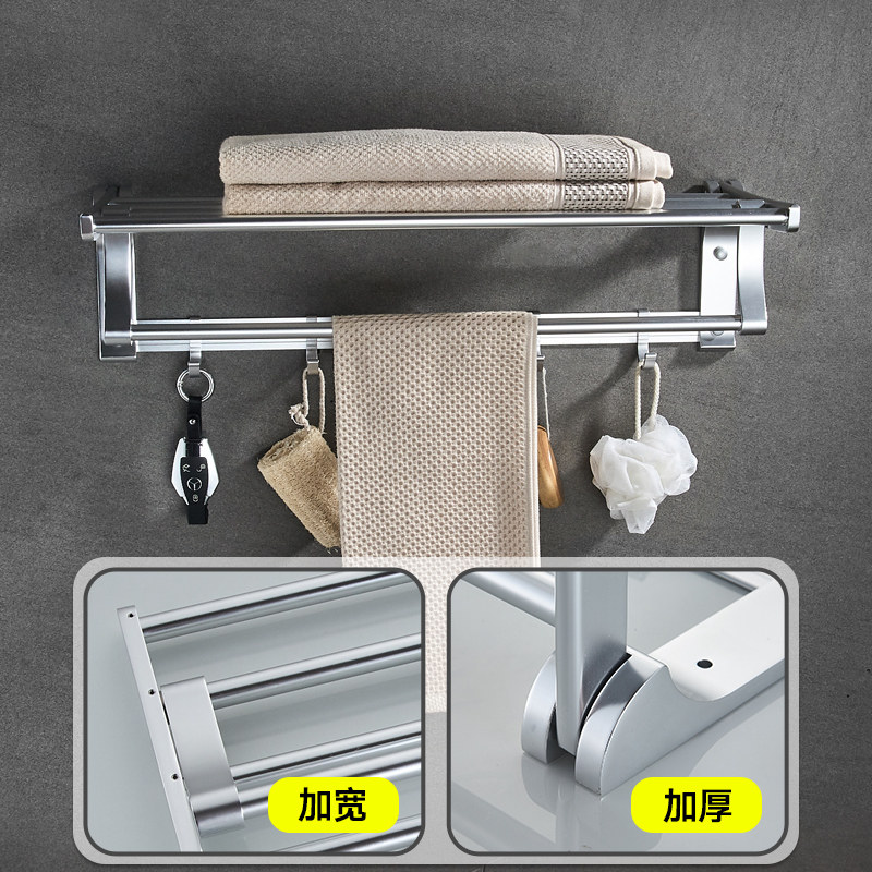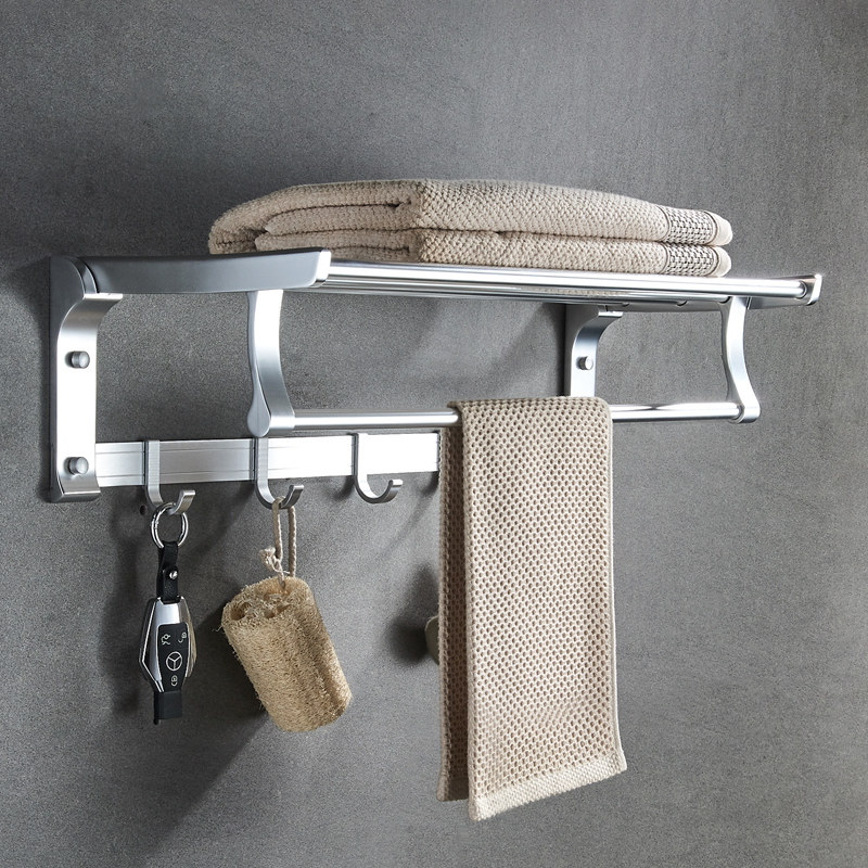 Space Aluminum Bathroom Hair Towel Rack Toilet Makeup Room Shelf Bath Towel Rack Wall-mounted Bathroom Hardware Pendant free of punch