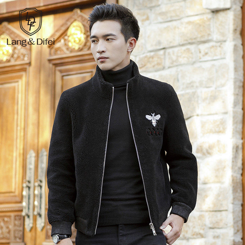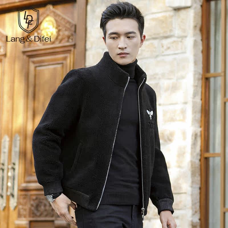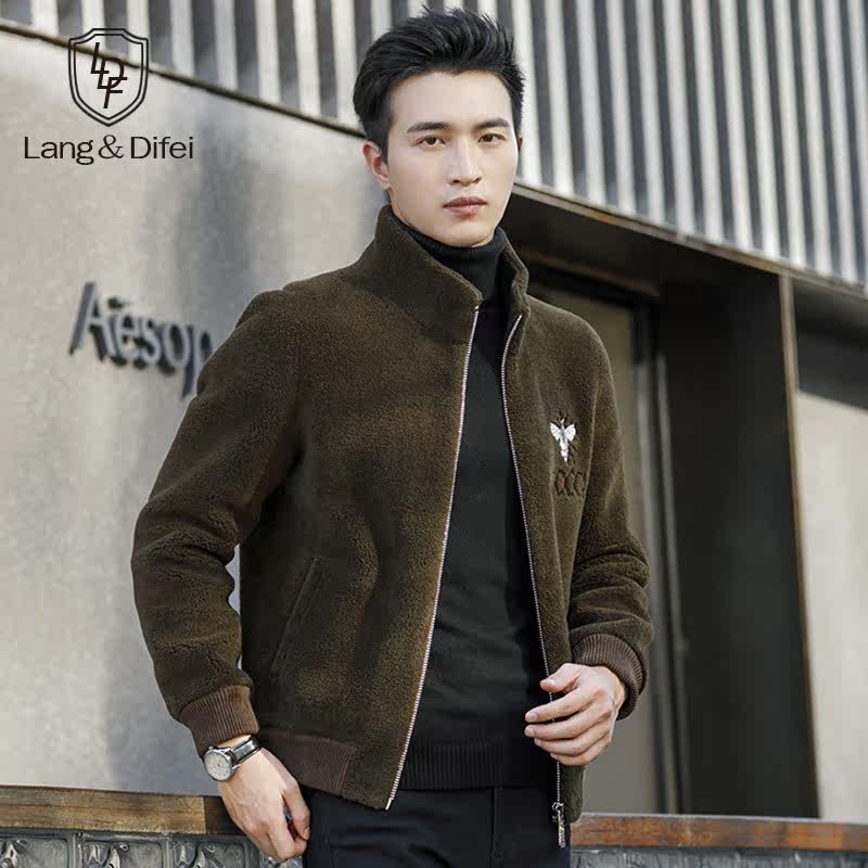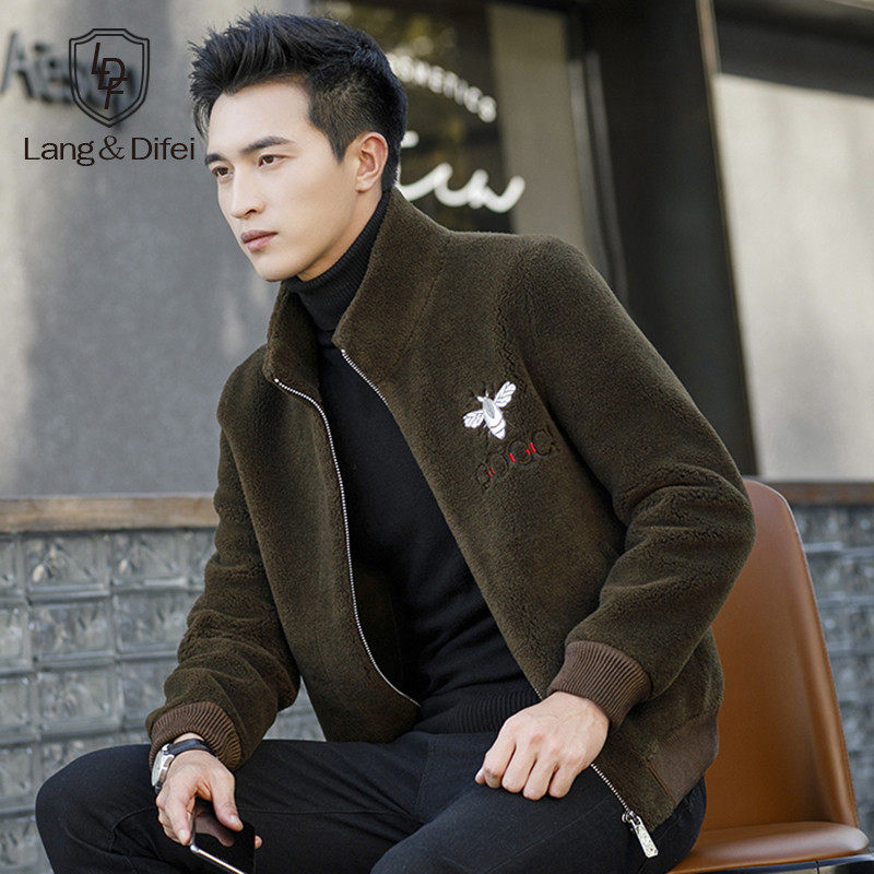 Autumn and winter new grain fleece jacket men's imitation fur wool coat fashion stand collar lamb wool thick jacket