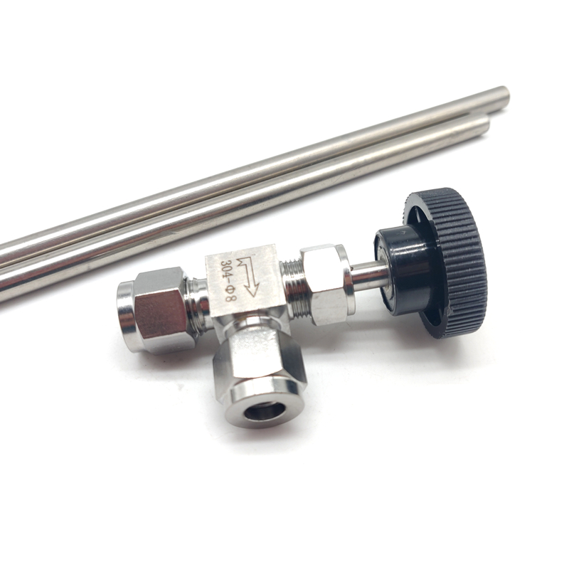304 stainless steel right angle cutting sleeve needle type valve angle type flow valve 90-degree cutting sleeve type stop valve adjusting valve 6810