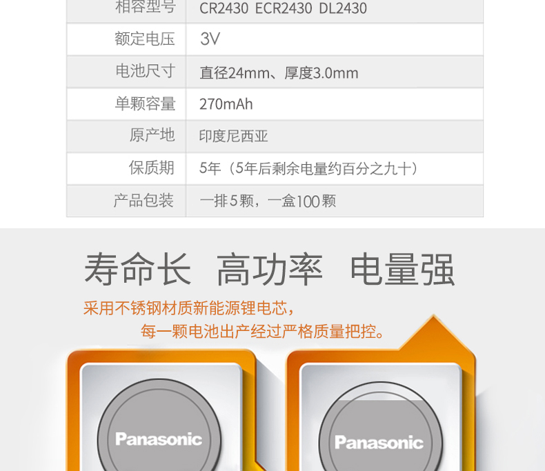 Panasonic Panasonic CR2430 button with battery 3V lithium electron diameter 24mm thickness 3mm Large number wafer button