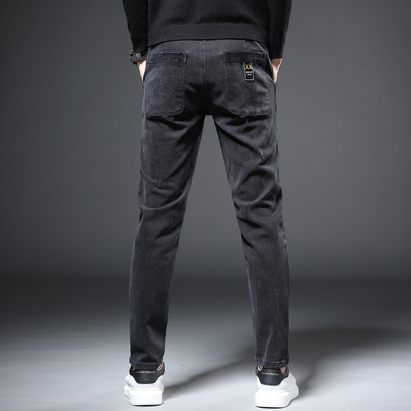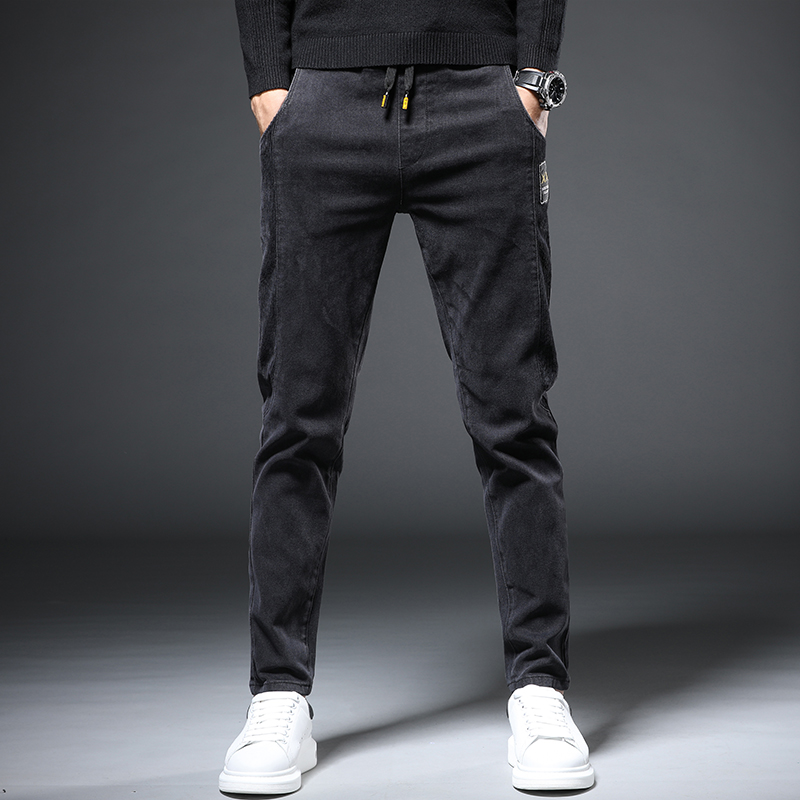 Hong Kong High-end Denim Pants Men's Wave Cards Spring Black Fix Small Feet Men Trends 100 Hitch Casual Long Pants Man