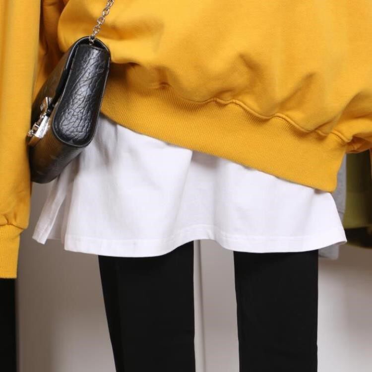 The sweatshirt is set with a white side and a large size false down, and the bottom diviner stack wears a 100 hitch underskirt to match the sweater.