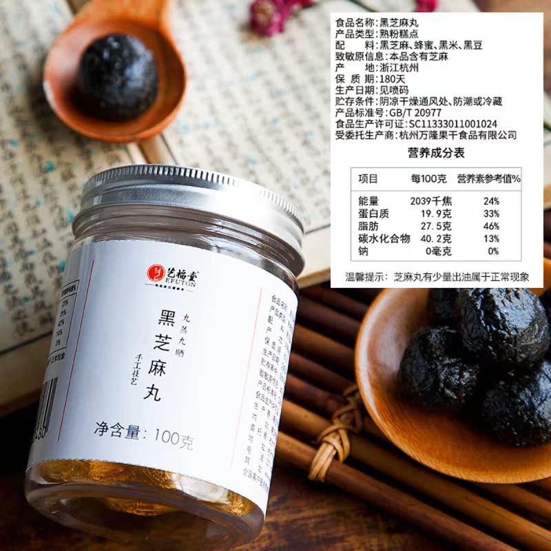 Yifutang buys 1 round and 2 black sesame balls, nine steamed and nine sun-dried handmade black beans and honey, pure snacks, instant snacks, tea food
