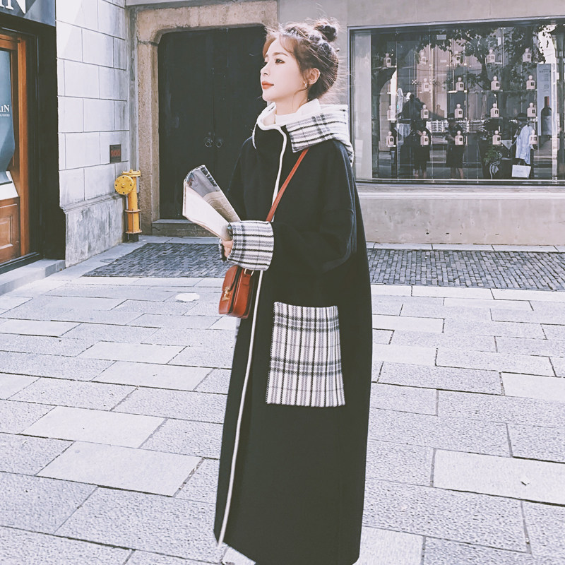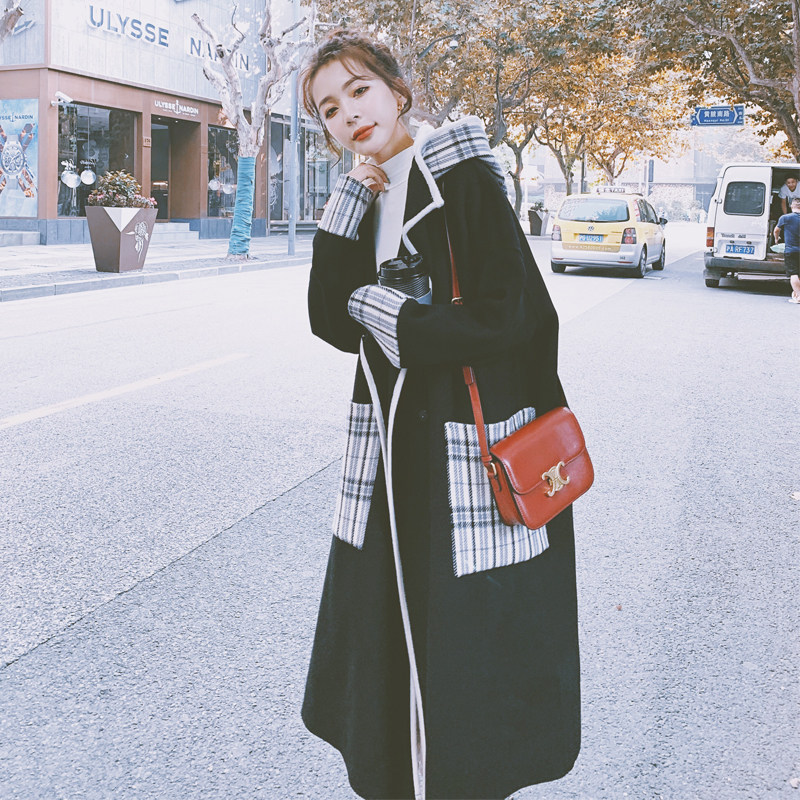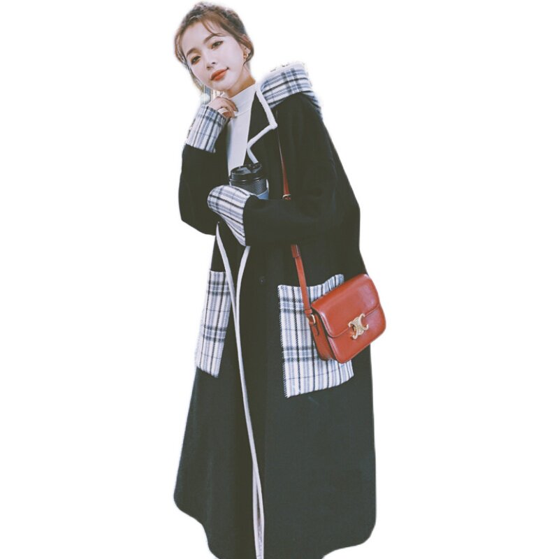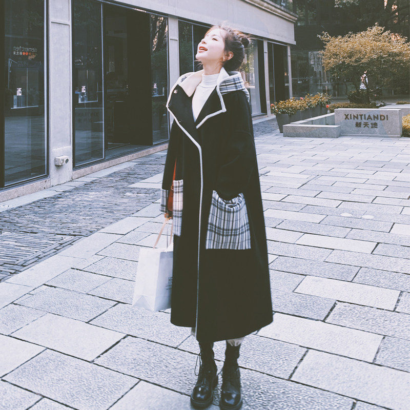 Woolen coat women's long edition autumn and winter 2021 new Hepburn style Korean version of large size women's black woolen coat