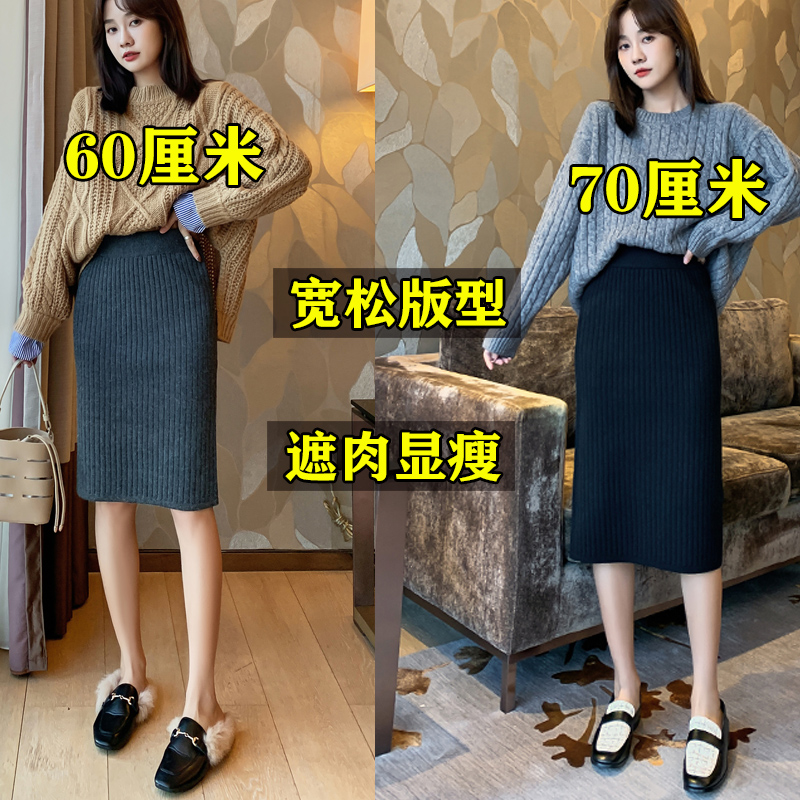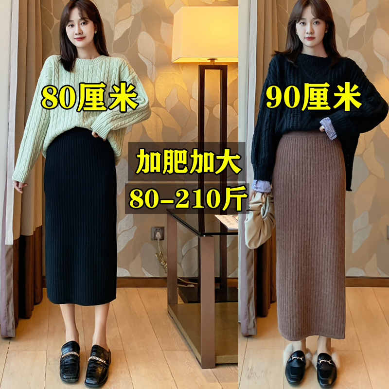 Large size skirt female split fat sister wool skirt knitted hip skirt high waist long skirt fat mm200 kg autumn and winter
