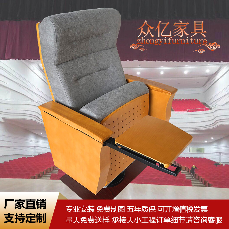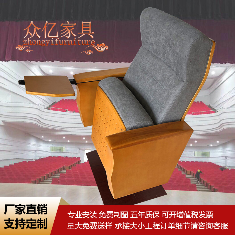Lower ventilation conference chair with writing board solid wood armrest frame theater chair classroom step chair concert hall chair factory