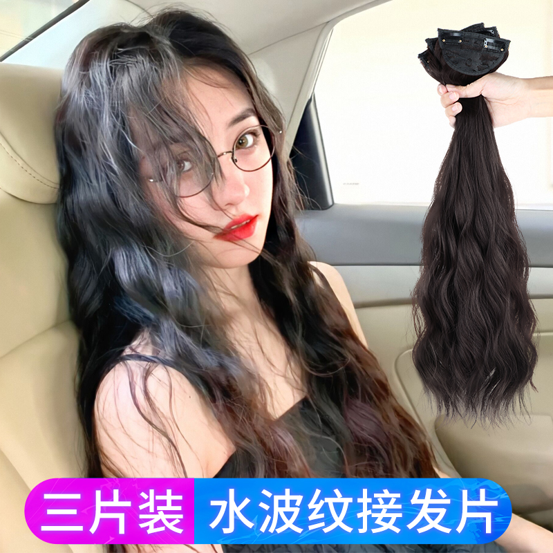 Wig woman long hair one piece net red water corrugated long curly hair Wig Patch Natural no-mark Imitation Hair Fake