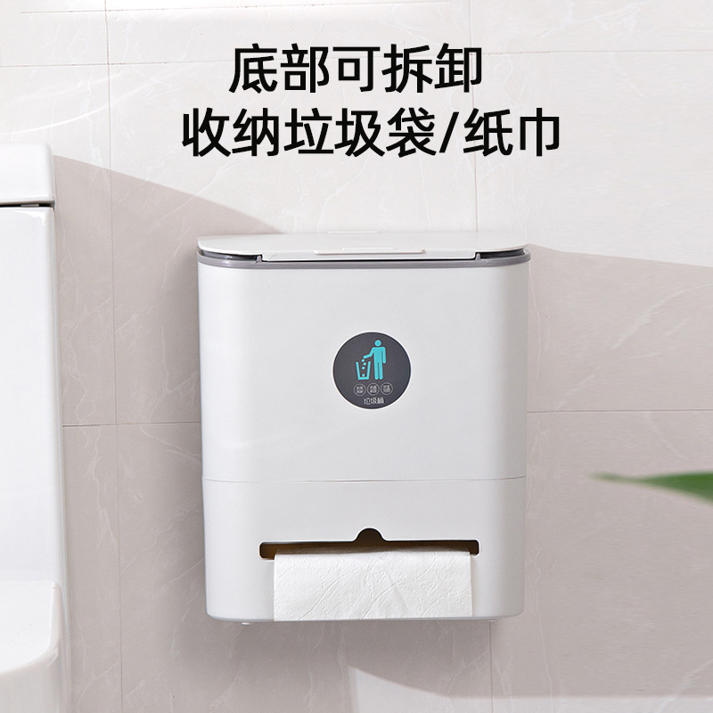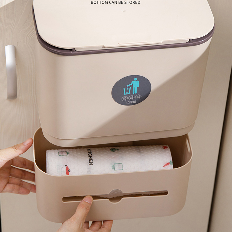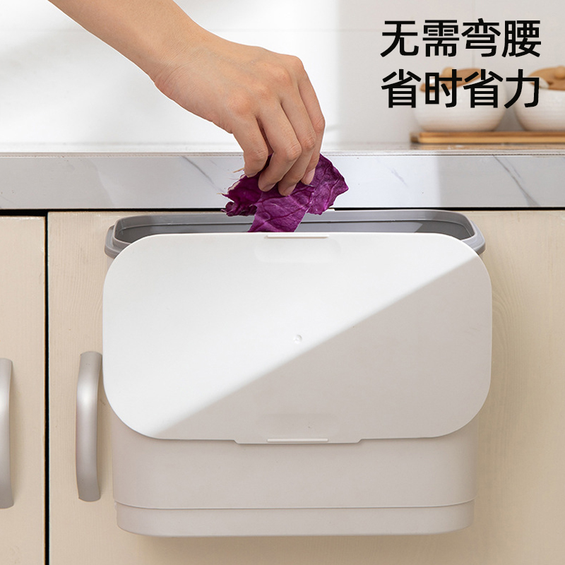 Kitchen wall-mounted trash can hanging household cabinet door bathroom hanging with cover sliding cover creative trash can